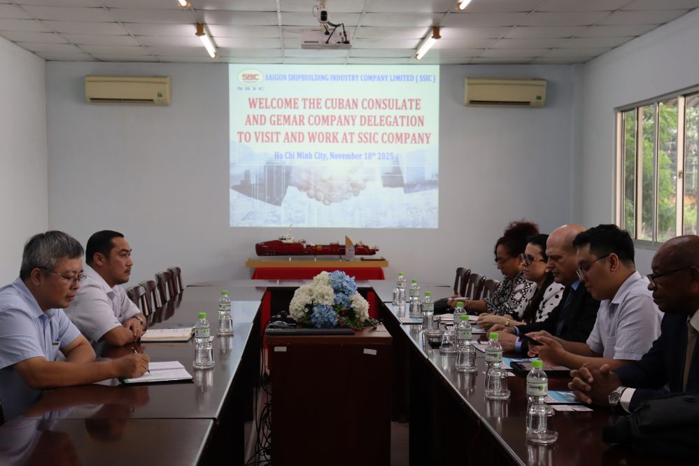 Sáng ngày 18 tháng 11 năm 2025 Công ty TNHH MTV Công nghiệp Tàu thủy Sài Gòn vinh dự đón tiếp Đoàn Tổng lãnh sự quán Cộng hòa Cuba đến thăm và làm việc tại SSIC